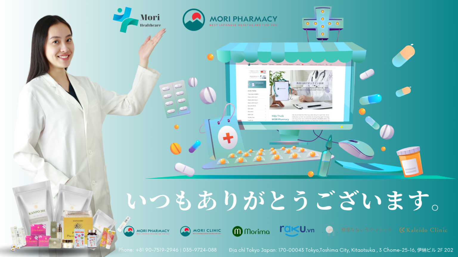 - Mori Pharmacy: Nhà thuốc phân phối hơn 200 loại dược phẩm, dược mỹ phẩm